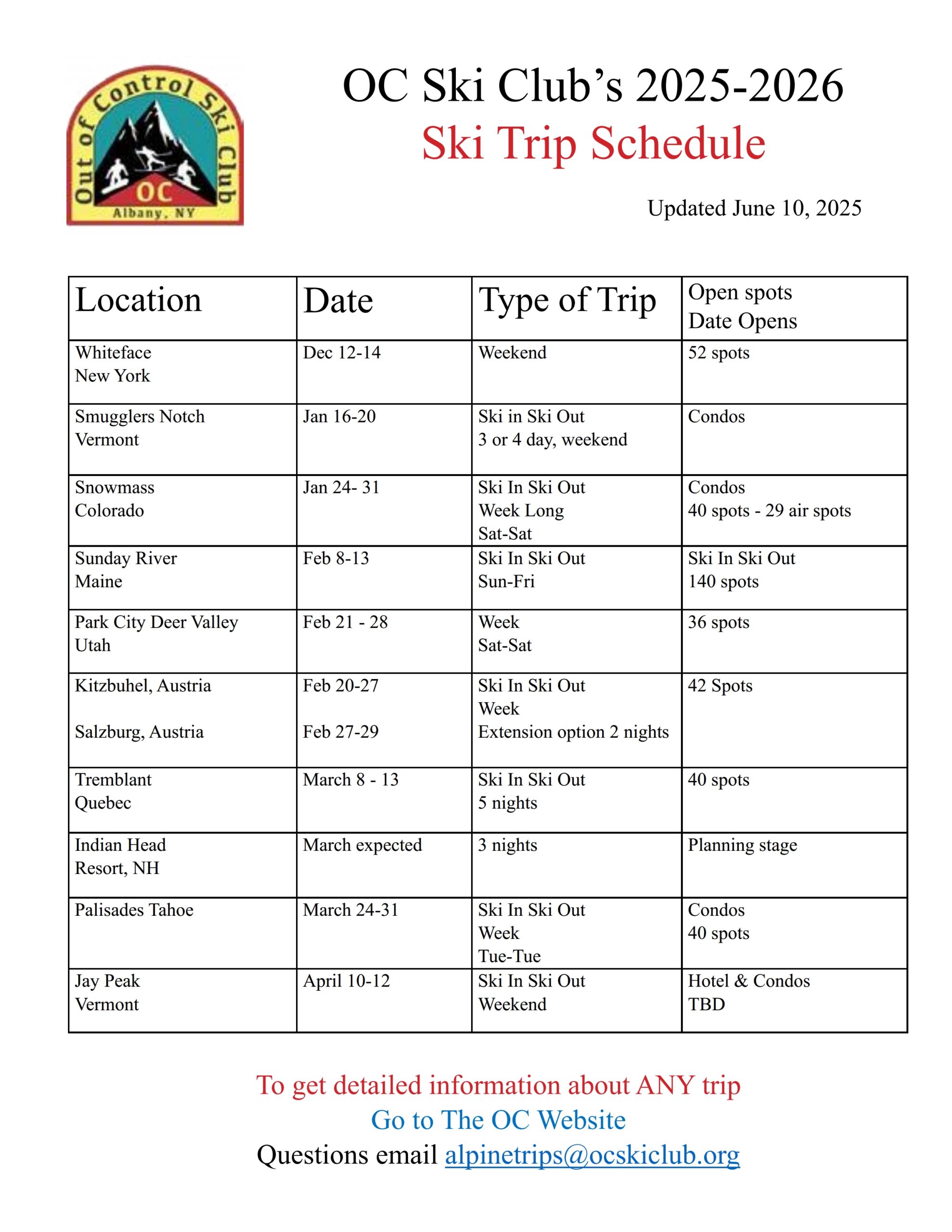 Click on 2025-2026 Ski Trips tab above