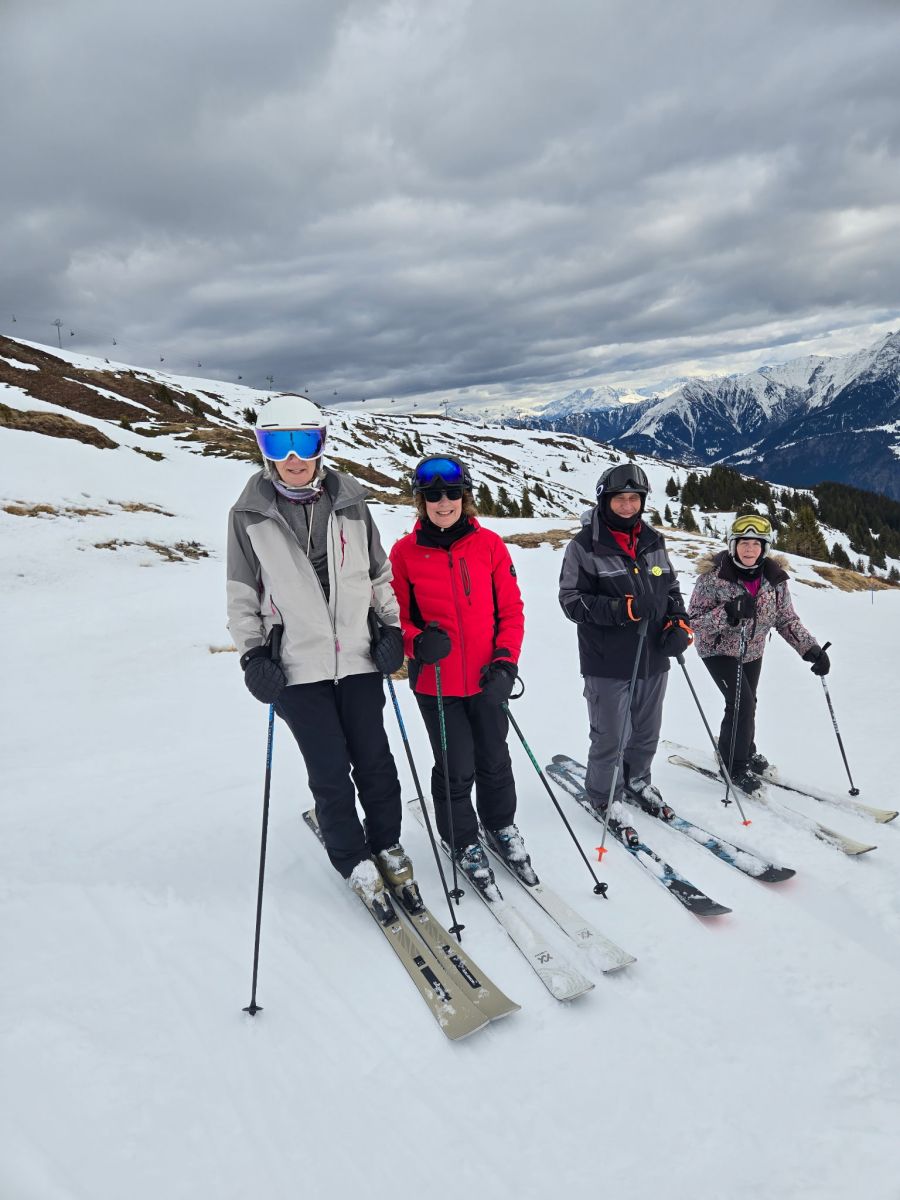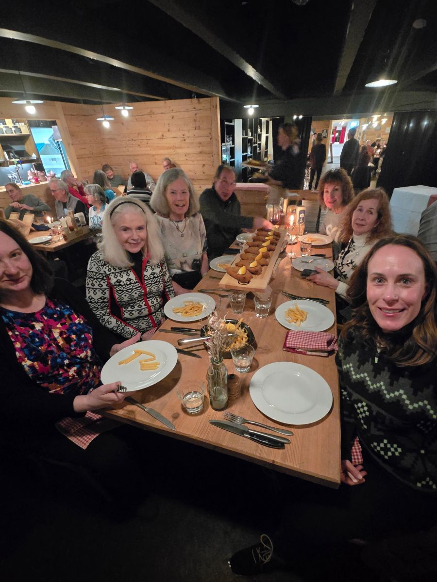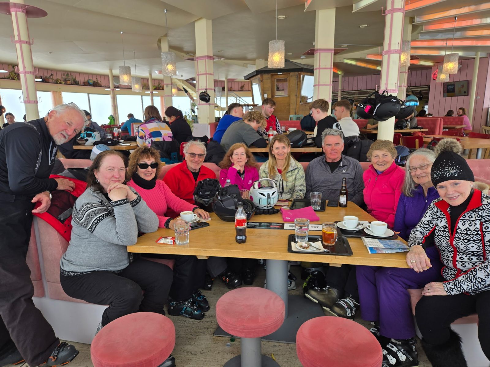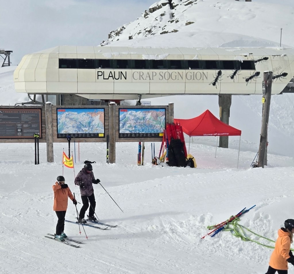 Our European trip afforded 29 adventurous OC members the opportunity to experience beautiful mountains, a modern European culture, interesting ski lifts, varied and delicious culinary experiences ,and an environmentally conscious lodging style. Laax is the unofficial snowboarding capital of Europe and has a distinctly youthful and funky vibe. There was a variety of terrain for skiing. At the top of the mountain, we encountered fluffy powder and packed powder conditions. From the midstation and lower, we had spring-like conditions with soft snow. All of the areas gave us a beautiful view. We giggled at the name of the midstation, “Crap Sogn Gion” (see photo below). Translated from Romansh, the least-spoken language of the four official languages of Switzerland (the others are German, French and Italian), it means St. John’s Stone (Peak). Laax is known for its snow parks and halfpipes which host several competitions. These areas could be seen from the chairlifts and midstation cafeteria. The abilities of the riders were very impressive. The “flytrap” effect of these areas meant that the other95% of the resort was left to the skiers. Everyone coexisted happily and peacefully at the resort. Our hotel boasted a vegetarian breakfast. Although many of us were wary of what we would be served, our fears were allayed. The buffet offerings were plentiful, interesting and delicious. Five of the 7 group dinners were in 4 different restaurants within walking distance. We enjoyed the esprit de corps of these 5 delicious dinners and shared our tales of each day’s adventures. Other adventures included fun lifts: the Lavadinas 6-pack lift designed by Porsche, the FlemExpress – the world’s only on-demand 10-person lift which takes you only to your destination, bypassing stops along the way – and the V-shaped Four cla lift which would transport you to a different mountain peak than you intended if you entered the gondola building on the wrong side. We also enjoyed the tree-top walk, the shopping, and the Cadillac photobooth, which peeled away several decades to reveal our younger, more attractive selves. Or at least, how we remember ourselves.Nine from our group returned to the USA and 20 of us continued to Zurich. We had a comprehensive city tour and boat ride across the lake. Many of us enjoyed spending additional time in the Lindt Museum of Chocolate. The samples were plentiful and delicious. As the Swiss trains were easy to navigate some folks ventured on to Basel, Munich and Luzern. If you had enough francs and luggage space, the shopping experience was wonderful. Overall, the trip was great not only for skiing but for the cultural experience.